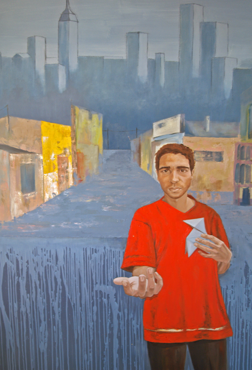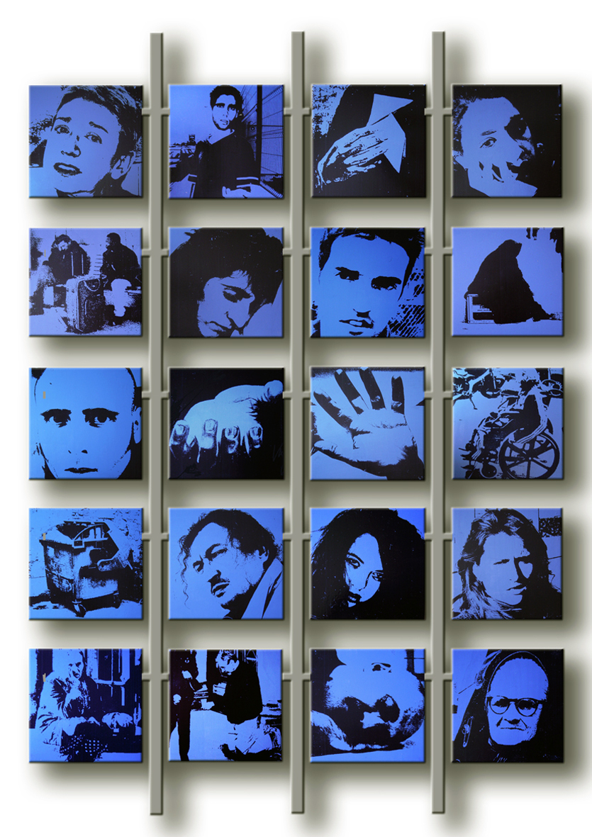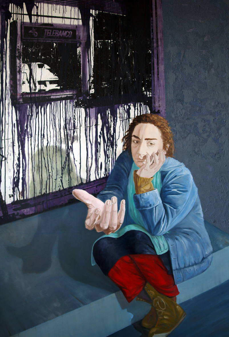 “Lo que nadie quiere ver...” es un proyecto artístico pensado para transmitir sensaciones, ideas y opiniones sobre la indigencia en nuestras calles. En cierto modo, pretende provocar sentimientos, alejados poco a poco de nuestro presente por necesidades sociales y, posiblemente, por la supervivencia personal. Es un proyecto basado en la observación y estudio, siempre desde un punto socioartístico, de una realidad que, aunque diferente, ha aprendido a convivir con nosotros en nuestras propias calles, marcando distancias entre ellos mismos y clasificándose por orígenes, razas, circunstancias y destinos. He tratado de pasar de ser un mero espectador a provocar con imágenes la denuncia de una realidad existente. Por negación eliminé el tema general de la pobreza y me centré en la indigencia manipulada por terceros y/o por la elegida (manipulada) por uno mismo. Tras investigar, siempre con un fin plástico y admitiendo que mi intención nunca fue analizar sus causas (lo cual dejo para otro tipo de estudios), llegué a la conclusión que la pobreza manipulada por terceros tenía un único fin: utilizar las des- gracias sociales o reales o las malformaciones de unos para despertar la “caridad” (verdadera o falsa) de otros. Las tipologías seleccionadas y plasmadas en nueve cuadros son: el sintecho como representante de todos los que viven en las calles, el chabolista como sociedad marginal, la inmigrante o la forma de cómo obtener recursos fácilmente lejos de su hogar, la anciana sin recursos ni posibilidad de obtenerlos abocada (utilizada o no) a la mendicidad, el sonado, feliz en su mundo lleno de nadas, los yonkies, en la frontera de mendigar su propia vida, la borracha, la fulanilla, personajes que mendigan una ansiada “calidad” de vida y el viejo pasota, representando a los personajes que, aceptada su condición, pasan de todo y de todos. Todos tienen un elemento plástico en común: la mano en escorzo pidiendo al espectador y mirándole directamente a los ojos, a excepción del último, el viejo pa- sota, que exige ser ignorado. Independientemente de representar a las personas, incorporo a cada cuadro un escenografía concreta y adecuada a lo observado. La instalación del proyecto es completada con un décimo panel compuesto por veinte cuadros de transferencias fotográficas y acrílico sobre madera y que recogen imágenes de la investigación y de los amigos que colaboraron con ella prestando su imagen. Este panel, se incorpora como Homenaje a todos ellos.