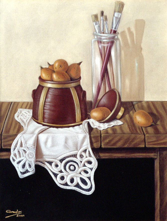 Desarrollé la técnica al pastel de una forma autodidacta, antes de comenzar mis estudios de Bellas Artes, llegando a realizar, en mi primera época, desde 1999 hasta 2004 más de 150 obras. Actualmente, he vuelto a retomar esta técnica, recuperando bodegones y composiciones, huyendo de las llamadas "naturalezas muertas" mediante la incorporación de objetos que evocan recuerdos y experiencias. El principal objetivo de esa técnica es el expresar mediante esos recuerdos, sueños e ilusiones de vidas pasadas y futuras. Hacer, en definitiva, que nuestra mirada se pierda en el tiempo, en sensaciones vividas y en los recuerdos que nos acompañan en éste y en sucesivos presentes.